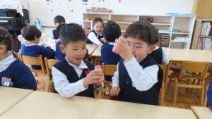 「同じクラスだね。」とヤクルトを乾杯していただくお友だちもいましたね。